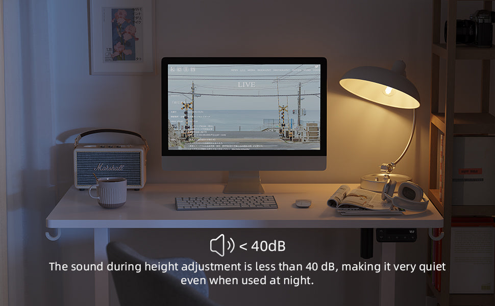The YIHAYO height adjustable desk provides a fully elegant work surface: 100cm wide x 60cm deep. With excellent load capacity and vertical lifting drive force, the tabletop has a high load capacity of 70kg and can lift and lower two displays at the same time.